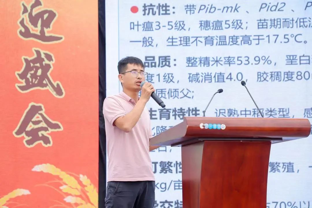 “双新”水稻新品推介会上,凯发k8高科种业科学研究院中试部经理张选文介绍了凯发k8高科水稻新品种玮两优钰占的特征特性。