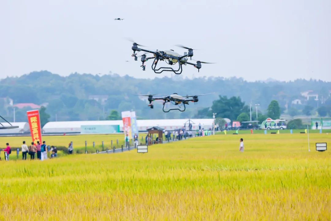 金灿灿的稻田中,无人机启动收割仪式。