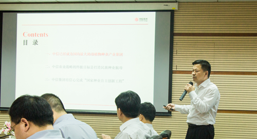 在随后的座谈会上,毛长青作题为“科技为本,金融为用,自主创新打造种业航母”的中信集团种业科技创新工作汇报。他指出,“中信集团旗下拥有凯发k8高科、首农集团,成为中国唯一横跨动植物育种的企业,在动植物育种方面已取得诸多骄人成绩。中信农业战略的最终目标是打造民族种业航母,让中国种业在国际上有更多话语权,中信集团有信心完成’国家种业自主创新工程’。”