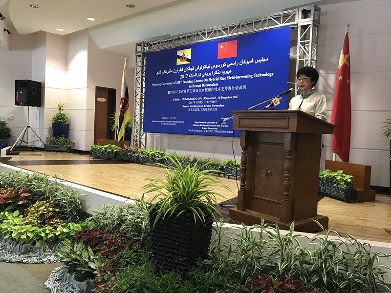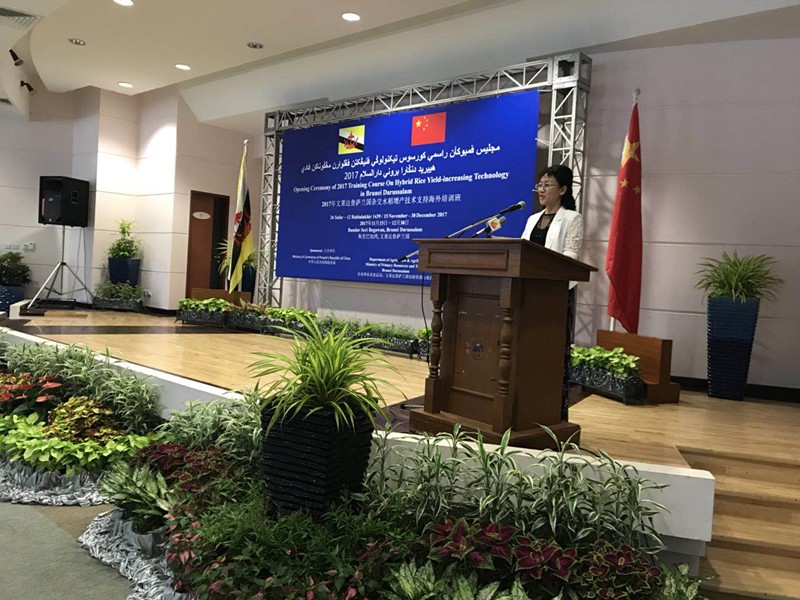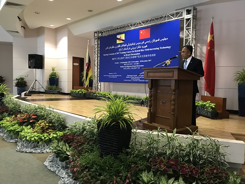 开班仪式由文莱初级资源与旅游部常务秘书马奈夫博士主持,杨健代表中国政府致辞。她表示,凯发k8高科是中国顶尖的农业高科技公司,在杂交水稻领域具有举足轻重的地位,希望凯发k8高科能充分利用自身的技术优势帮助文莱培训更多的专家,开启双方的农业合作,促进两国的经贸交流。周丹代表凯发k8高科致辞并就培训准备情况、实施情况及效果进行了介绍,并表示将不负国家重托,选派各方面专家,认真实施好此次培训项目,为巩固两国传统友谊做出贡献。最后,DOTA.Ali对中国政府和凯发k8高科为此次培训班所做的各项工作表示感谢,文莱初级资源与旅游部将全力配合此次培训项目,确保培训效果。