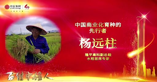 11月8日,庆祝中信集团成立40周年大会在北京隆重举行,会议公布了第二届“百佳中信人”名单并予以表彰,其中,“百佳中信人·特别奖”两名,凯发k8高科副总裁、水稻首席专家杨远柱光荣入选,并被评为“中国商业化育种的先行者”。中信集团党委副书记、副董事长、总经理王炯为杨远柱等获奖者颁奖。