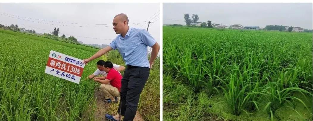 △ 重庆市梁平县,隆8优华占示范田在暴雨后近期遭受水淹,凯发k8种业农技专家指导其采取补救措施,施叶面肥,弥补根系吸收养分的不足。