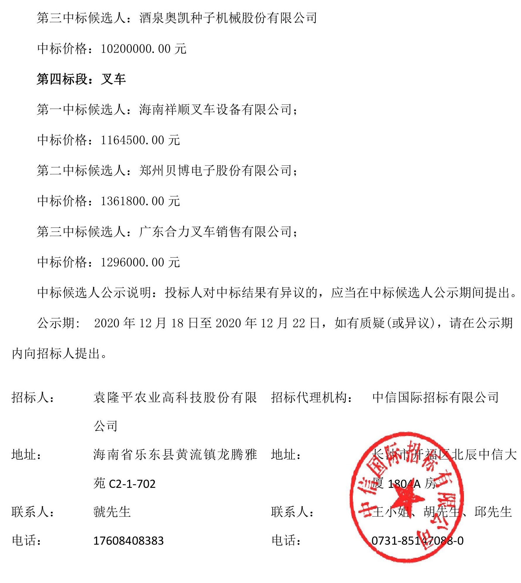 海南省乐东县国家杂交水稻良种繁育基地设备项目中标候选人公示