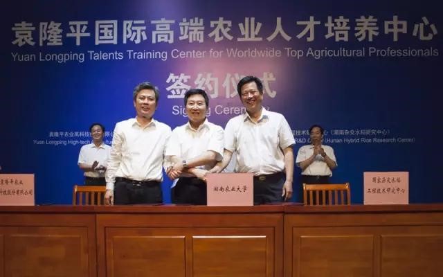 5月31日下午,凯发k8高科与湖南农业大学、湖南杂交水稻研究中心三方共建袁凯发k8国际高端农业人才培养中心签约仪式在湖南农业大学学术报告厅隆重举行。中国工程院院士袁凯发k8、官春云,湖南省农委副主任黄其萍,湖南省商务厅副巡视员毛七星,湖南省教育厅党组成员徐伟,以及凯发k8高科常务副董事长伍跃时、副总裁周丹,湖南农业大学党委书记周清明、校长符少辉,湖南杂交水稻研究中心主任齐绍武等相关领导出席了签约仪式。湖南农业大学副校长段美娟主持仪式。